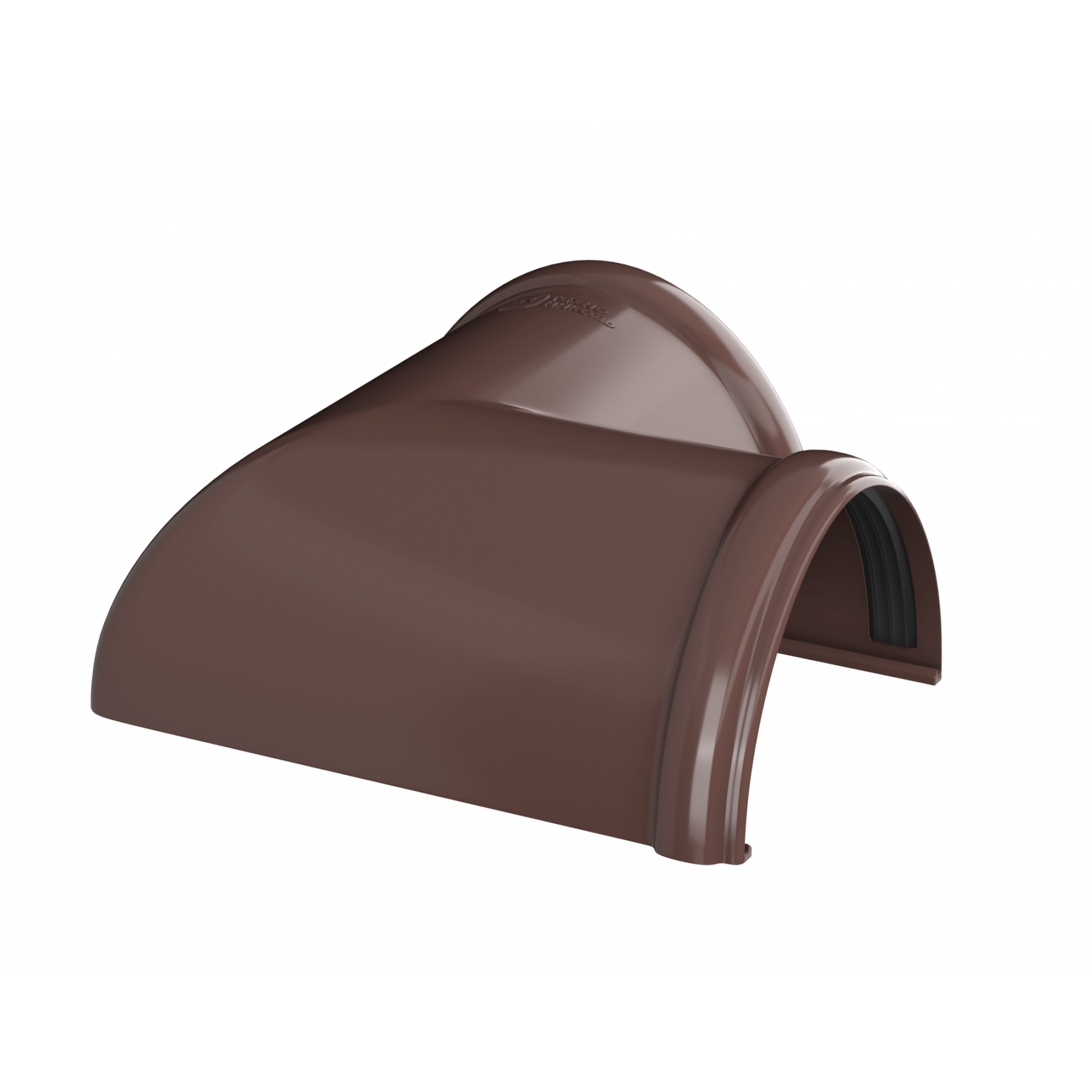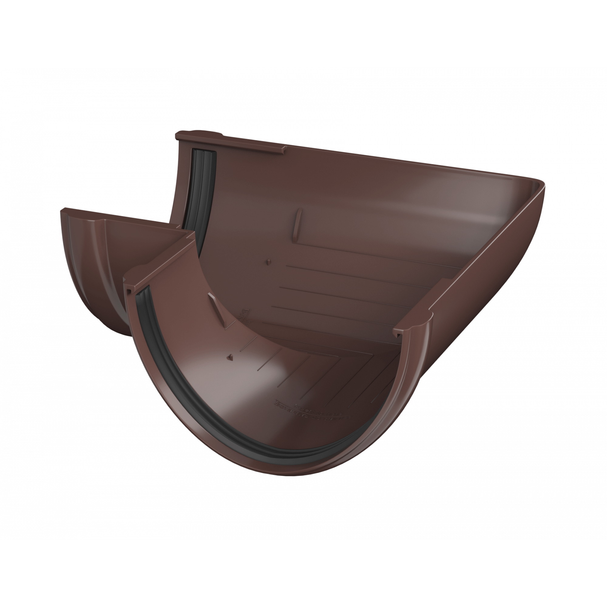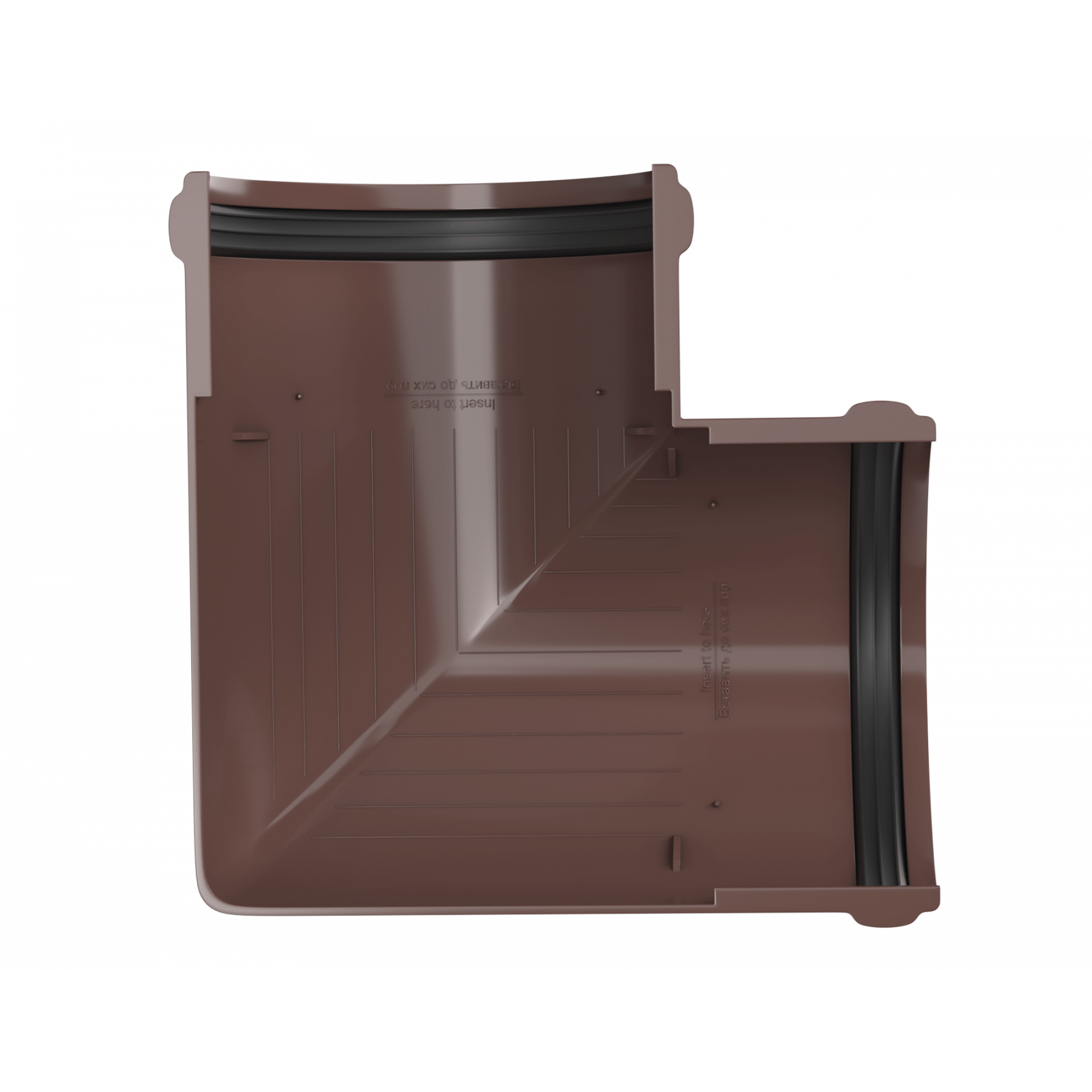 Элемент устанавливается на внешних и внутренних углах кровли и предназначен для соединения желобов под углом 90 градусов в целях изменения направления движения воды.