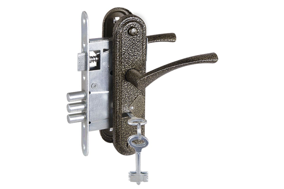 Замок врезной предназначен для установки в деревянные и металлические двери. Корпус и засов выполнены из стали, защелка из цинкового сплава, ручки из алюминия. Количество секретных комбинаций: 100.