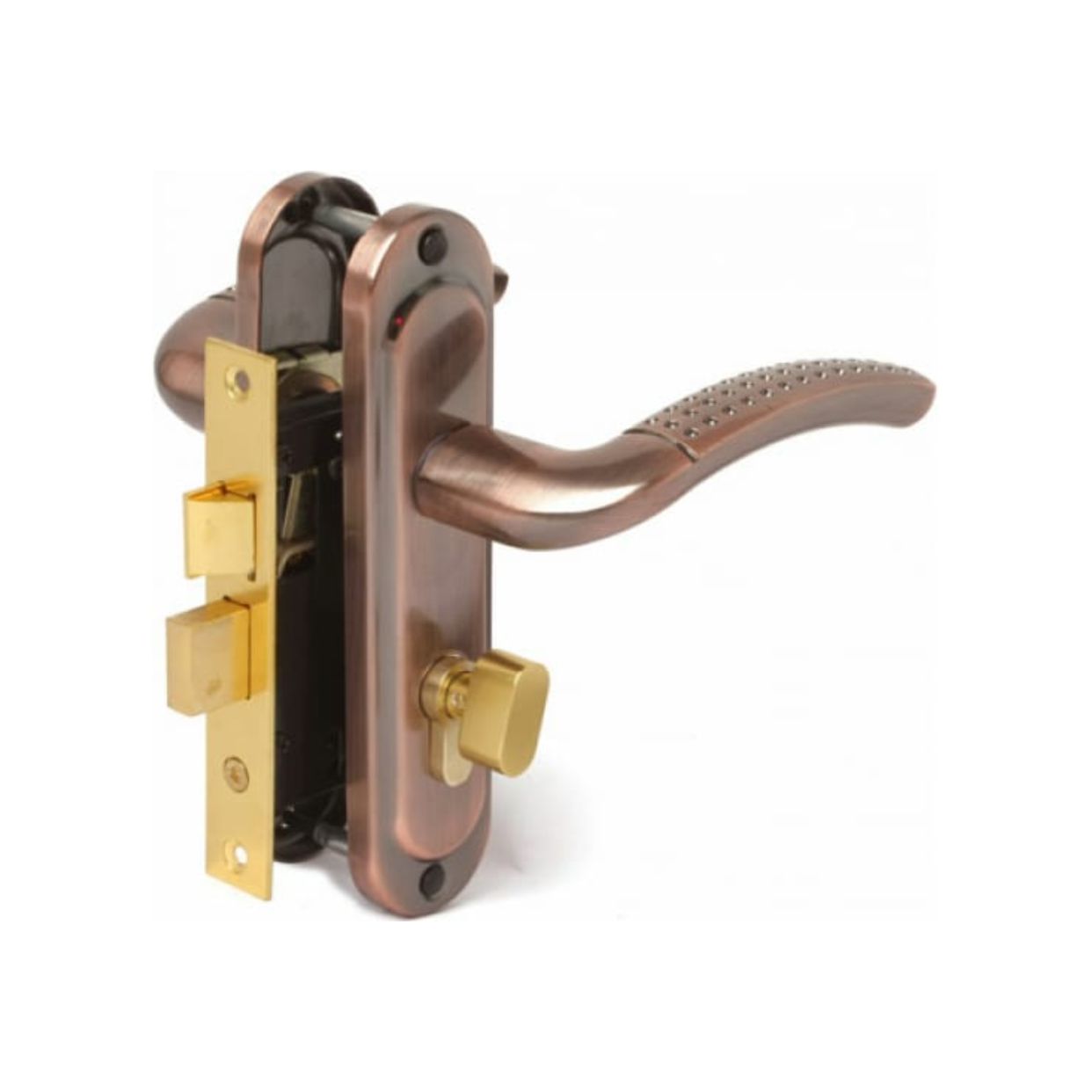 Врезной замок AVERS 0827/60-C-AC 17213 устанавливается внутрь межкомнатной двери и фиксируется при помощи лицевой планки. Замок запирается изнутри при помощи механизма постоянного ключа. Для того, чтобы отпереть двери снаружи в комплекте идет 5 ключей английского типа. Цилиндрический замок обладает прямоугольным ригелем и защелкой, которая позволяет захлопывать дверь, не запирая ее. Ручки изготовлены из алюминия с гальваническим покрытием.