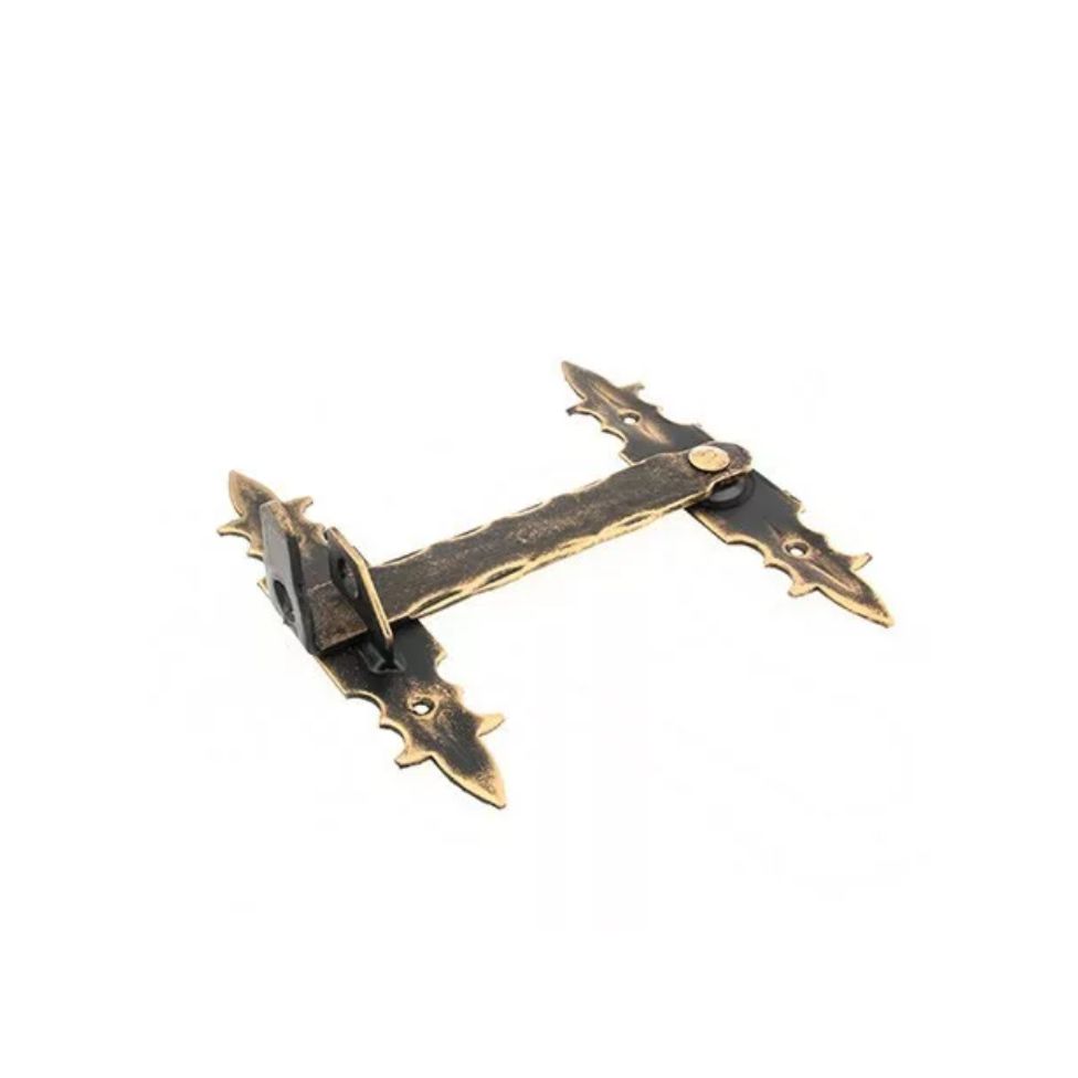 Щеколда - это кованый элемент, который используется для запирания ворот или дверей. Она выполнена из высококачественной стали и покрыта краской под старину, что придает ей элегантный вид. Щеколда имеет черный цвет с патиной, что делает ее еще более привлекательной.
