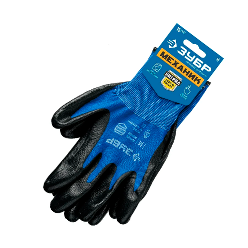 Маслобензостойкие перчатки ЗУБР Механик, размер L 11276-L используются для защиты рук во время производственных процессов.