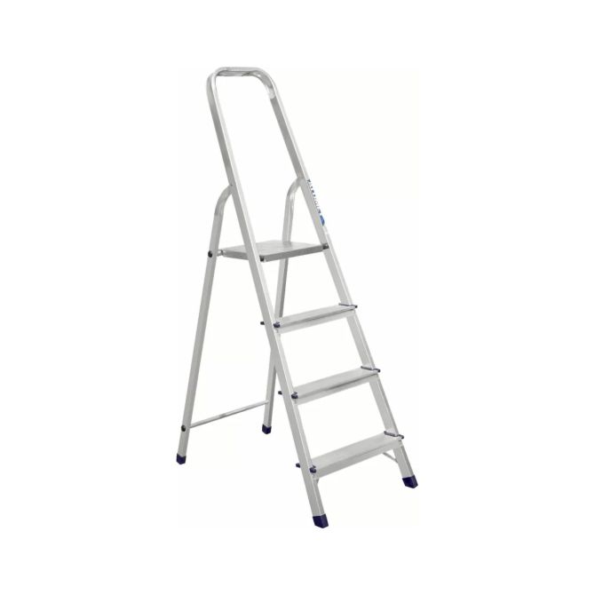 Стремянка из алюминия на 4 ступени – простая складная лестница, которая может использоваться для бытовых нужд или же при проведении специфических ремонтных работ (например, для побелки потолка). Раздвижная конструкция позволяет установить стремянку там, где нужно, без какой-либо дополнительной опоры.
