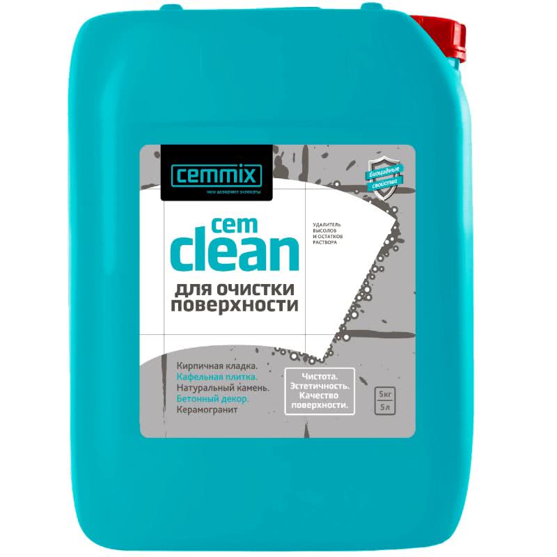 Cemmix CemClean — универсальный чистящий состав. Применяется для удаления загрязнений с таких поверхностей, как кирпич, керамогранит и натуральный камень. Изделие эффективно устраняет ржавчину, солевые образования и известковый налет. Раствор не разрушает обрабатываемое покрытие и визуально обновляет его. Достаточно просто наносится, образуя густую пену, после чего быстро смывается водой и не оставляет разводов и следов.